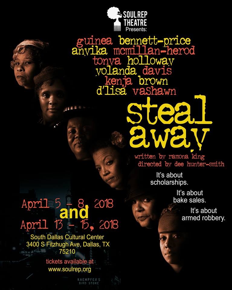“Through humor, STEAL AWAY, shows when sisters unite, nothing is impossible,” says Hunter-Smith. The production boasts a dynamic cast that includes Soul Rep’s co-founders – Guinea Bennett-Price, Anyika McMillan-Herod, and Tonya Holloway – who haven’t shared a stage in over a decade, along with company member, Yolanda Davis, and newcomers Kenja Brown and D’Lisa VaShawn.