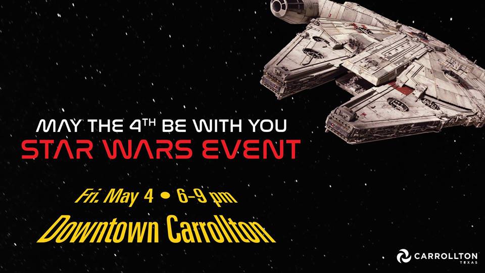 In a galaxy not so far away, Historic Downtown Carrollton presents a Star Wars Day with a FREE themed event on the Square. Laser Tag, face painting, Games, Star Wars themed booths, 6-9 PM