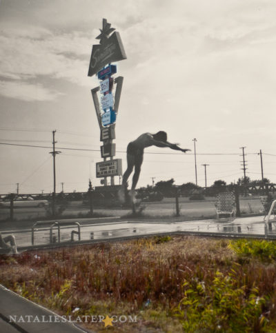 The exhibition aims to explore the idea of travel and American culture through interactive photography. vernacular photographs taken in the 1950s and 60s are featured and paired with contemporary photographs Natalie Slater shot along the modern day Route 66, from the same locations and vantage points! The images are backlit and overlaid inside interactive light boxes so as to create a unique road trip experience along the Mother Road, or America’s Main Street, with a view towards both past and present.