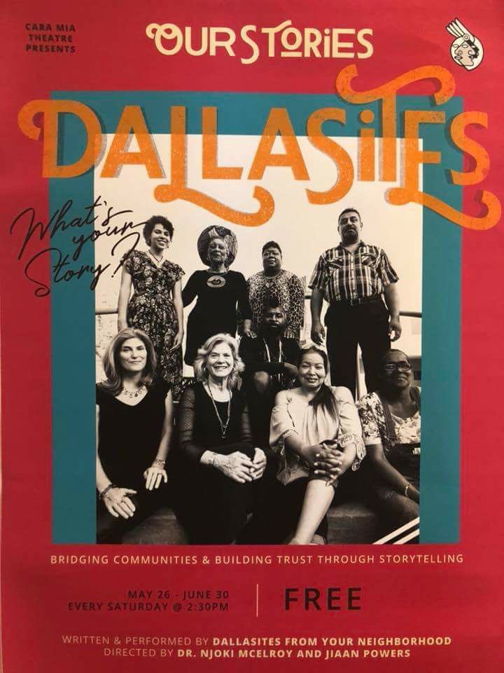 Cara Mia Theatre Co. presents “Our Stories: Bridging Communities and Building Trust through Storytelling”, written and performed by Dallasites from different parts of the city. Under the direction of renowned storytellers Dr. Njoki McElroy and Jiaan Powers, this diverse group will take their true-life stories and perform at different locations throughout Dallas. “Our Stories” will be a moving and inspiring experience of the power of storytelling and its ability to bring diverse people together. As an audience member, you will have the opportunity to witness this one-of-a-kind performance and share their thoughts and find out how to join a storytelling community in your neighborhood!