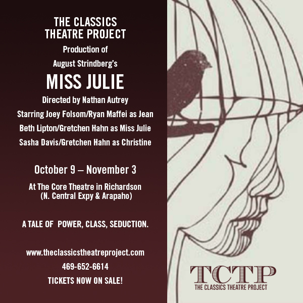 UPDATE: Our production of Miss Julie has been postponed due to parking lot construction. Thank you for understanding!