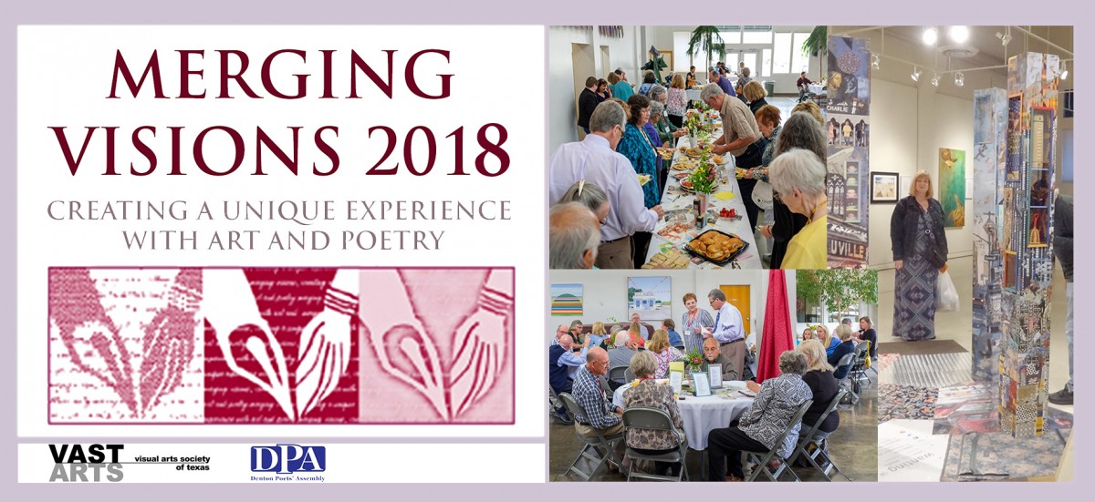 The Merging Visions exhibition is a collaboration between the Denton Poets’ Assembly and the Visual Arts Society of Texas. Members from each group create pairings of art and poetry – either visual art inspired by a poem, or a poem inspired by a piece of visual art.