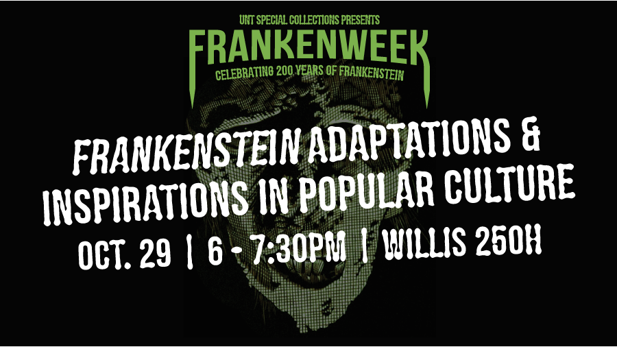 This event is part of the Frankenweek series of events, put on by UNT Special Collections in collaboration with UNT Comics Studies and UNT Media Library, to celebrate the 200th anniversary of the publication of Mary Shelley's Frankenstein.