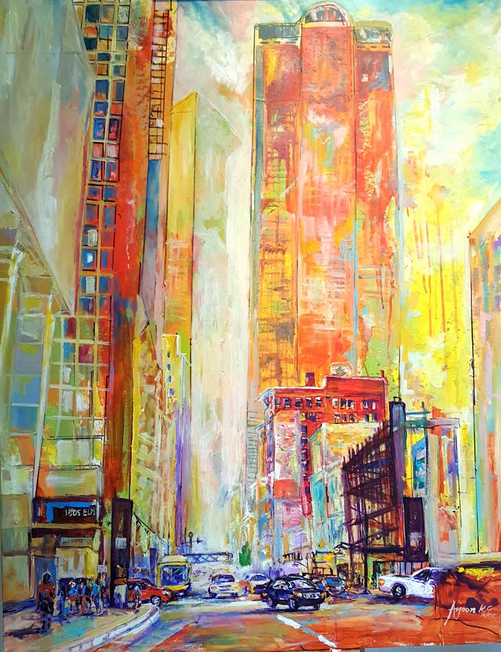 Paintings and mixed media works of cityscapes and urban environments by Irving-based artist and entrepreneur, Arjoon KC. Citing Jackson Pollock and Pablo Picasso among his foremost influences, Arjoon takes an organic approach to painting, deconstructing the predictable by blurring the flow of form and color, experimenting with both texture and surface dimensions.