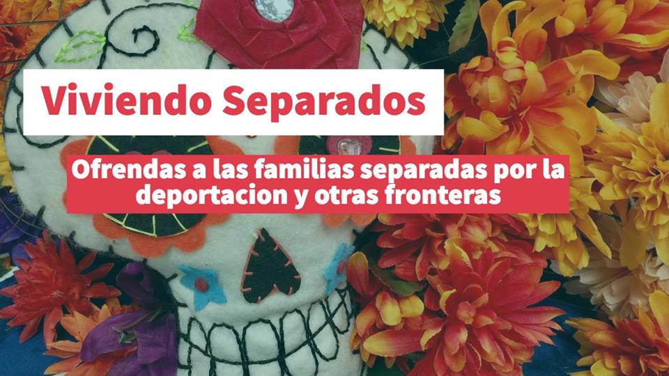 Viviendo Separados: Ofrendas a las Familias Separadas por la Deportacion y Otras Fronteras is an experiential art exhibition featuring beautiful altares de ofrendas (altars to the departed). Each display pays tribute to loved ones who live apart due to borders, deportation or death while migrating. Artivists who handcrafted the displays will interact with visitors as they explore the ofrendas to share their personal story of family separation. Papel picado, flores de papel and piñatas hand-crafted by local members of the immigrant community and their allies will provide a setting reminiscent of the recent film Coco.