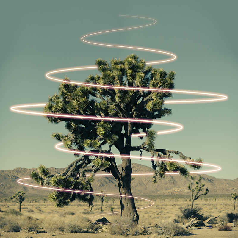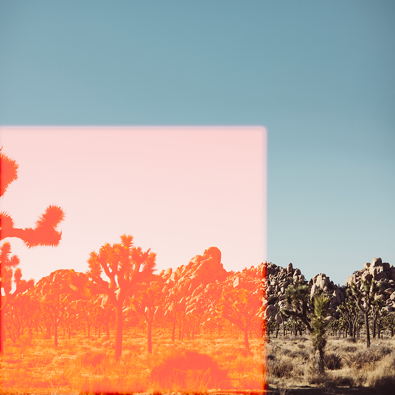 For WEST OF 3:00AM, Paxton traveled through West Texas and along the West Coast, which inspired her to photograph the contrasting environments intertwined by the concept of marking the landscape with lucid squares slicing through, resting in and defining the scale of the planes. When she visited Joshua Tree, however, her experience transitioned the work from envisioning almost solid structures to imagining a physical expression of her soul, her light, moving through the space. This same perception translated to Chino Hills and other parts of California. The abstractions began very linearly – with the square forms. Rigid yet bright. Moving into more of a sporadic pattern – neon lights characterized by the emotions she felt in the space.