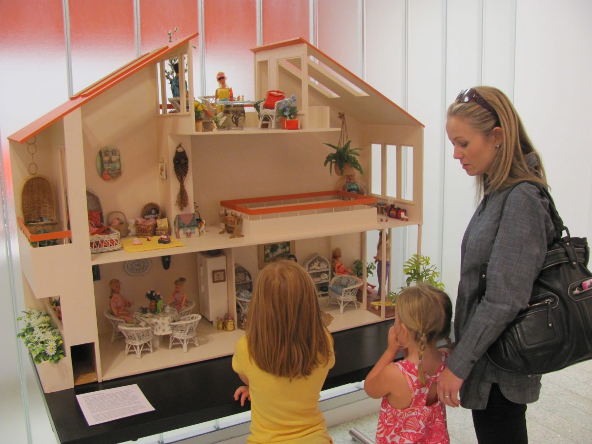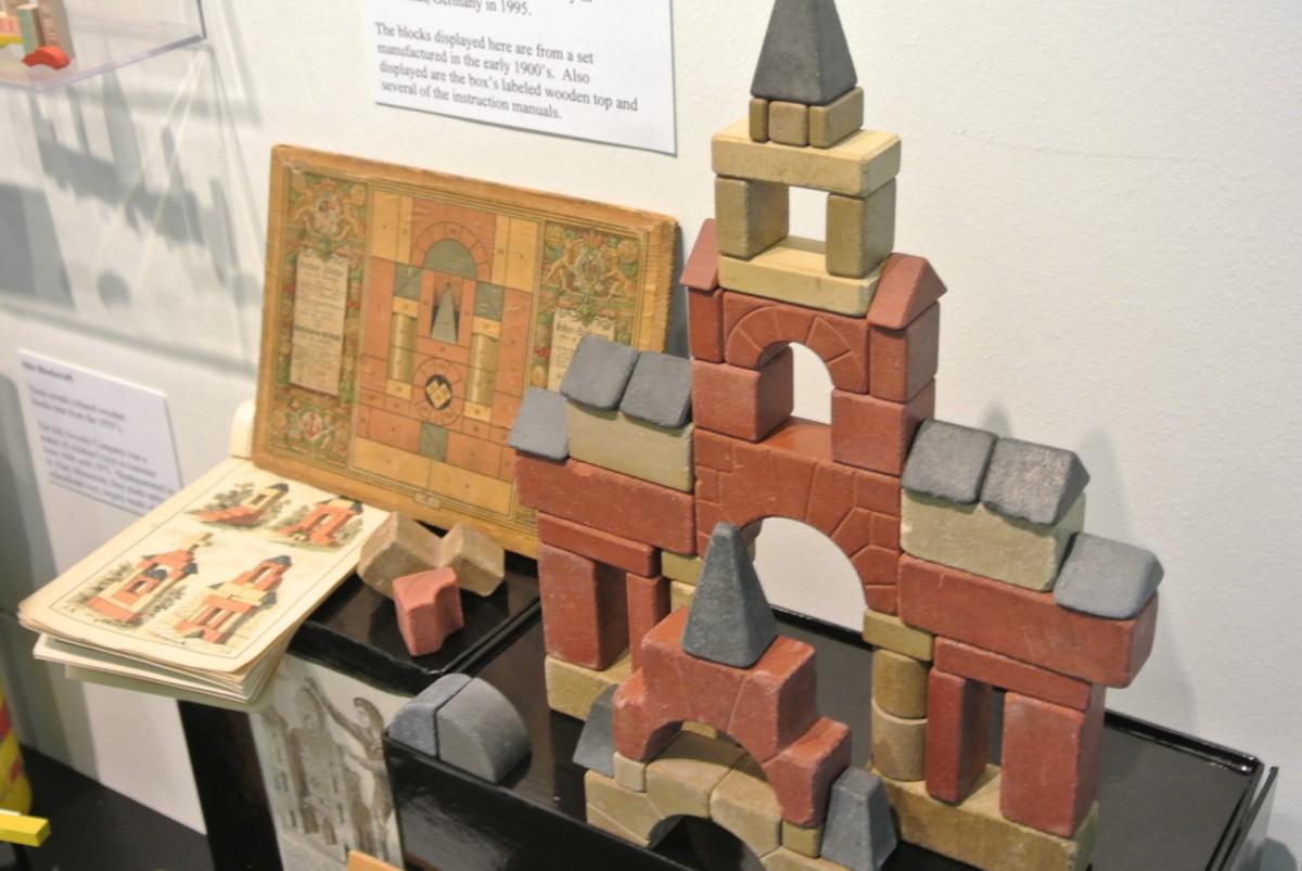 The exhibition includes a wide spectrum of vintage and modern toys, including unusual examples like the Eames House of Cards, AstroBrite and Girder and Panel Sets. A section of the exhibition examines a variety of blocks—from German stone Anchor Blocks dating from the early 1900s to the colored Playskool wooden blocks that have been a part of so many toy boxes for decades. Additionally, the show looks at the various toy buildings in existence, with a special emphasis on doll houses, including one of the first Barbie Dream Houses and a house built by an architect for his daughter in the 1970s. Also included are groups of buildings from the Fisher-Price collection and the metal toys of the Marx Company. A highlight of the show is a 6-foot tall K’Nex Ferris Wheel made up of 8,550 individual pieces.
