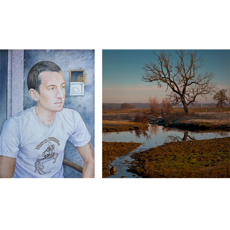This exhibit features the photography of Jonathan Reynolds and the paintings and drawings of Sam Ivie. This collaboration featuring Reynolds’ photographs along with Ivie’s images is the result of a plan to engage in more artist-organized two-person and group exhibits. Painted or drawn portraits have a unique way of functioning with landscape photography. Displayed alongside each other, the mediums of color photography and painting form a dynamic exhibit because of their differences. Both artists use photography, with the main variant being one’s work is photography and the other’s use of the medium is a means to an end. For Ivie, it is reference material he uses along with imagery he primarily invents; for Reynolds, it is the medium itself.