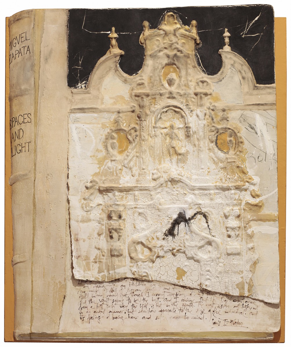 In describing his work, Miguel Zapata said, “The images in my work are not the product of observing Nature; they proceed from the cultural baggage which has been stored in my memory, where vivid memories are combined with images pulled out of books, prints and even from simple oral descriptions; I gather them and order them within a coherent framework; I manipulate them, trying to reduce what was a multiplicity of things, into a unity in which the memory of the original image remains in a more or less deformed fashion. You might say that I work on the work of man. It is a melancholy, sometimes ironic, vision upon the readymade. Reality is reduced to pure archaeological data which almost constitutes a negation of the present. And it is imagination that has acted as an abstractive process, transforming it.”
