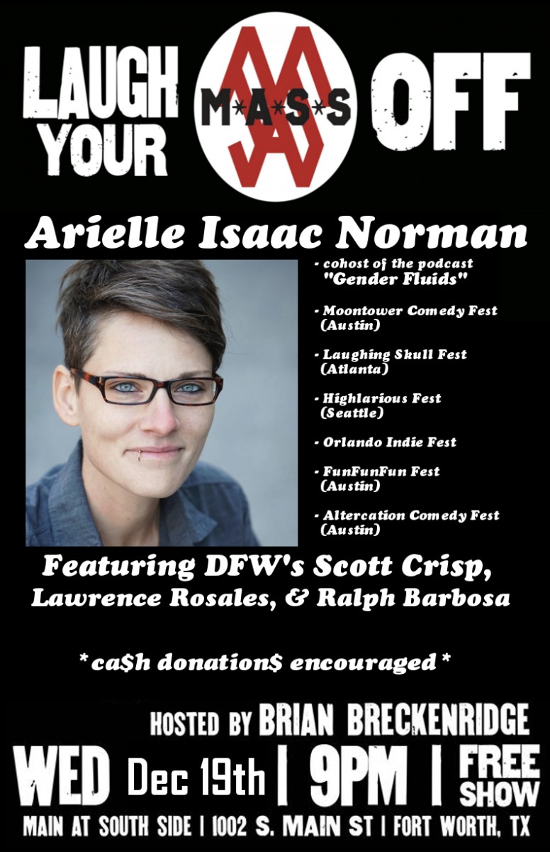 A comedian based out of Austin, TX, Arielle Isaac Norman has performed in festivals and shows all over the country, performing with Brian Posehn, Kristen Schaal, Cameron Esposito and more.