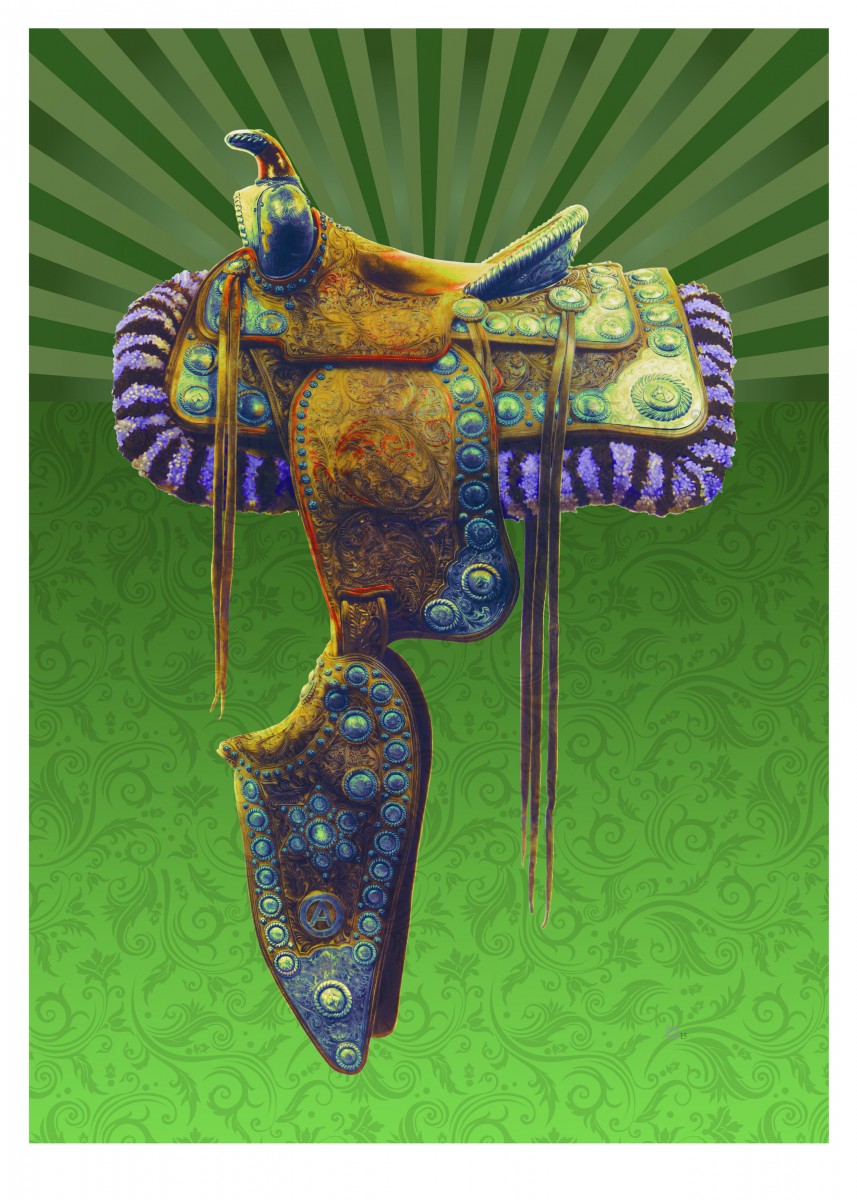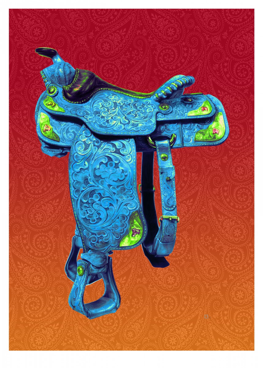 Fort Works Art, in conjunction with the Fort Worth Community Arts Center, presents I Wanna Be A Cowboy, an exhibition showcasing original graphite on mylar drawings and limited edition prints by Fort Worth artist Marshall Harris. Coinciding with the annual Fort Worth Stock Show & Rodeo this exhibition includes several of Harris’ original Saddle drawings, as well as his renowned ‘The Hand That Feeds’ drawing, on loan from collectors. This will be the first time these incredible original works will be on view to the public in Fort Worth. Keeping in the western theme, Harris will also have new additions to his colorful Psychedelic Saddle series that are available in various sizes.