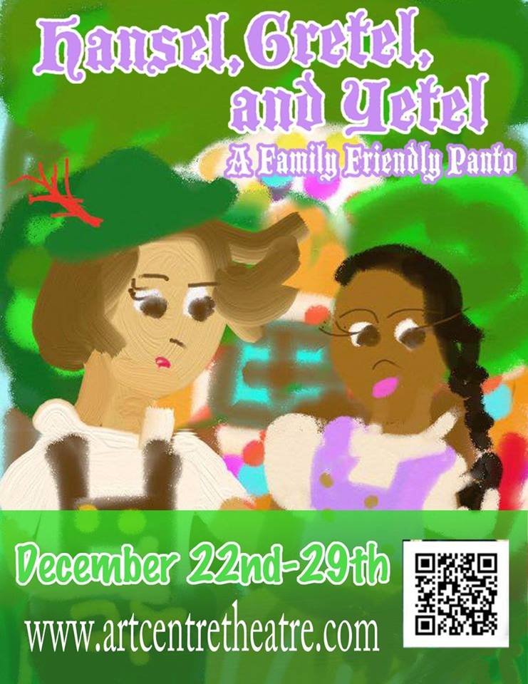 In the style of traditional pantomime, Art Centre Theatre brings you the story of Hansel (our principal boy played by a girl) and “his” manly Dame sisters Gretel and Yetel as they eat a witch's house and try not to get eaten themselves. Pantomime is great fun for the audience with shoutbacks, props, singalongs, dance interludes, and lots of other fun surprises. Come check out this beloved winter British pastime.