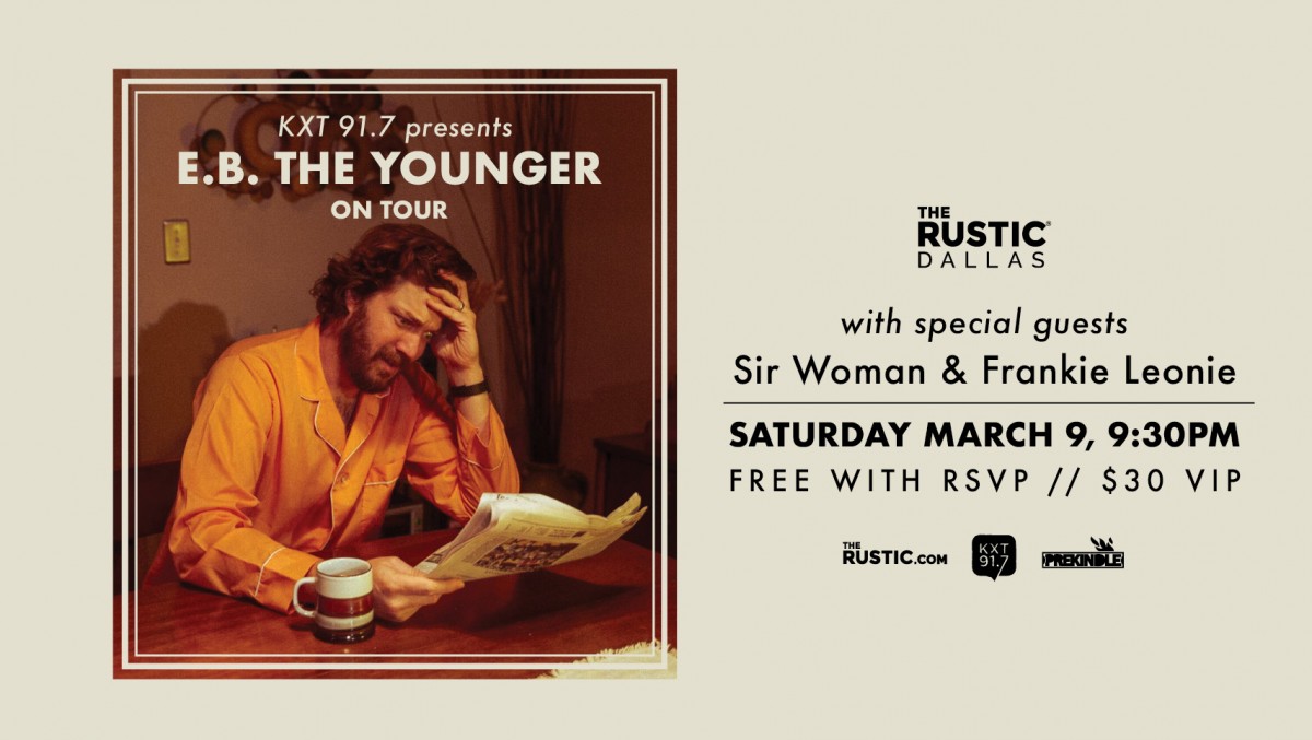 Join us for an evening with E.B. The Younger (Eric Pulido of Midlake) plus special guests Sir Woman (Kelsey Wilson of Wild Child) and Frankie Leonie presented by KXT 91.7!