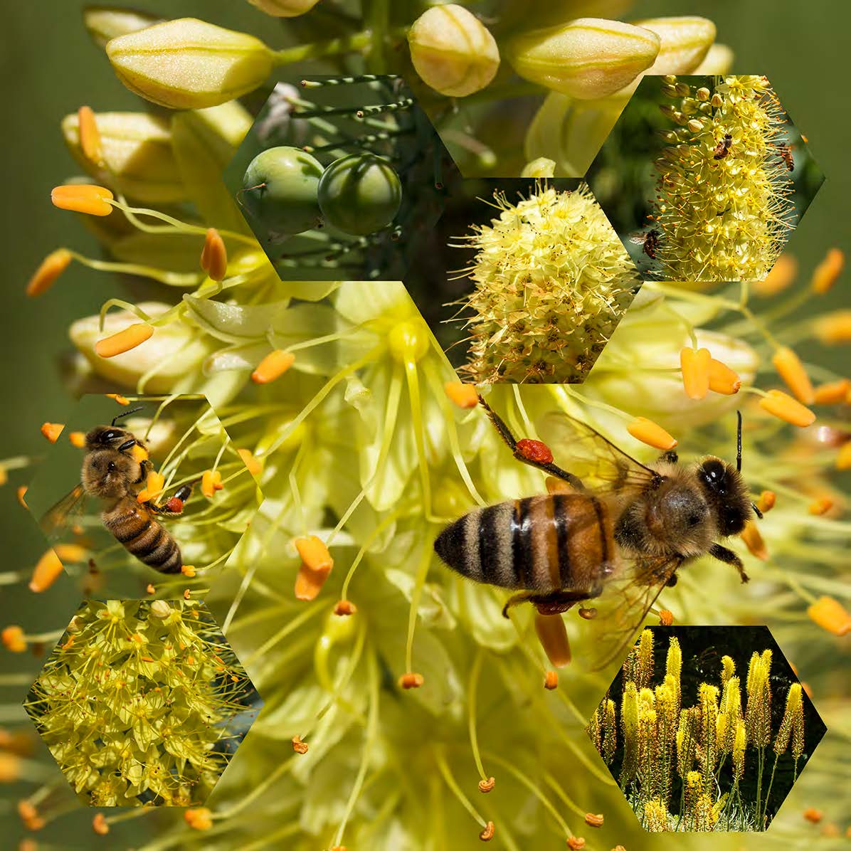 California based artist Nancy Macko has drawn upon images of the honeybee society to explore the relationships between art, science, technology and ancient matriarchal cultures. Macko combines elements of painting, printmaking, digital media, photography, video, and installation to create a unique visual language. This combination of media allows her to examine and respond to issues related to eco-feminism, nature, and the importance of ancient matriarchal cultures – as well as to explore her interest in mathematics, and prime numbers in particular, in which she attempts to make explicit the implicit connections between nature and technology. This exhibition includes a new series inspired by the bee attracting plants of the Denver Botanic Gardens.
