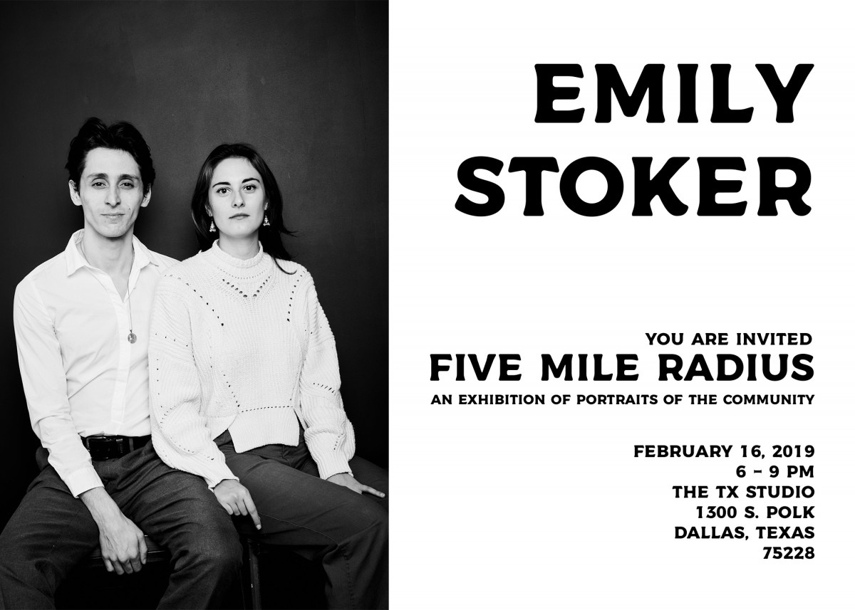 The TX Studio is pleased to announce the opening of photographer Emily Stoker’s Five Mile Radius exhibition on February 16, 2019, at The TX Studio (1300 S. Polk St, Dallas, Texas 75224) from 6 – 9 p.m.