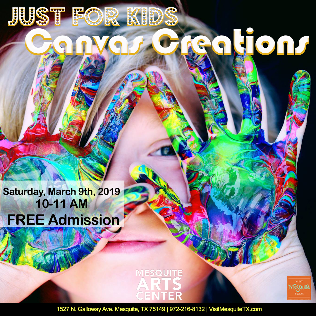Please join The Mesquite Arts Center for the quarterly event "Canvas Creations." Since this is one of our most popular events of the season, we suggest arrival time be (1) hour before the event, to ensure your spot. The seating is on a first-come, first-serve basis.