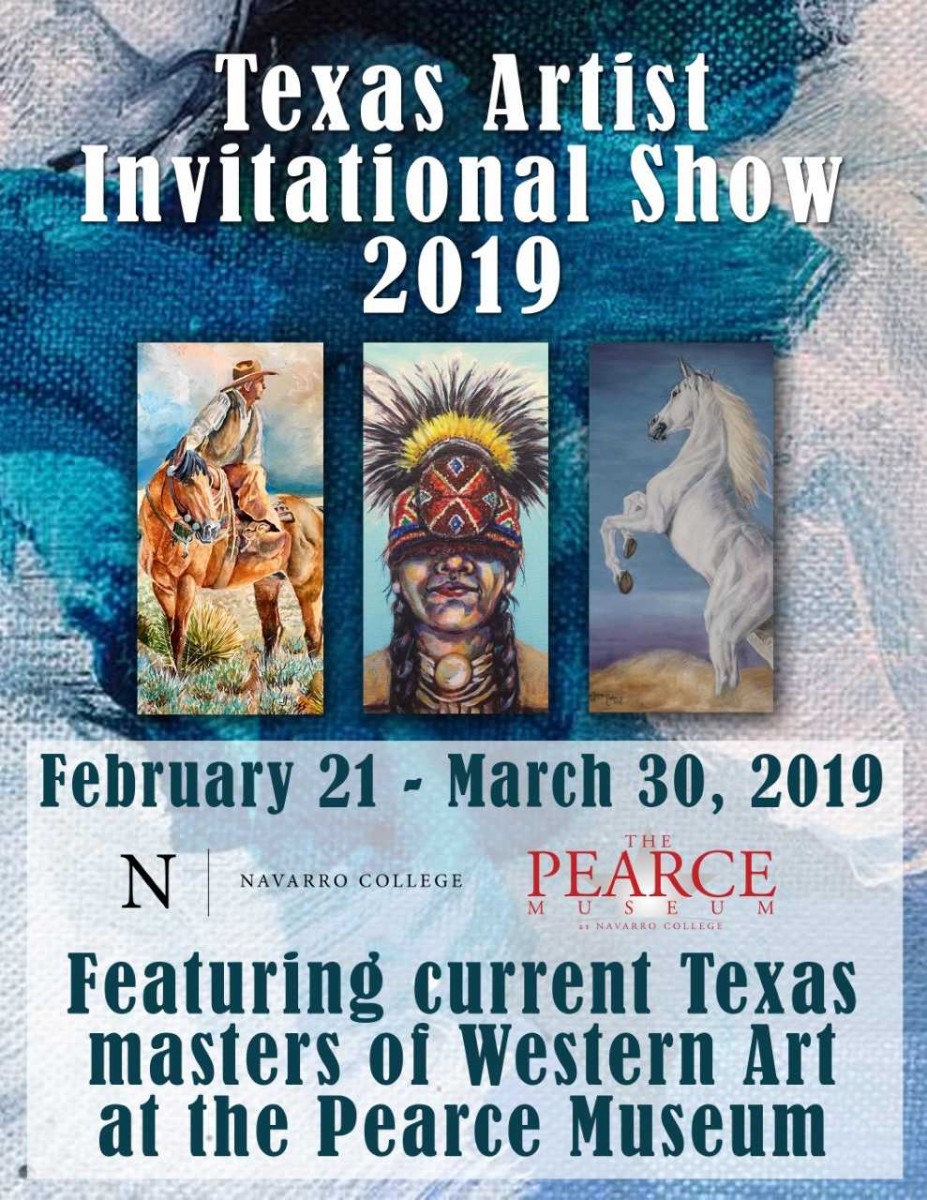 The Pearce Museum is pleased to announce our upcoming show, Texas Artist Invitational Show 2019. Eleven artists from across the Lone Star State will show their work at the Pearce beginning February 21 through March 30. The artists are: June Cade, Calvin Carter, Stephanie Ford, David Godfrey, Howard Halbert, Deb Miller, Jack Moss, Stephanie Smiley Eargle, Margie Taylor, Tim Vanya and Gary Ward. Some of the pieces will be fore sale.