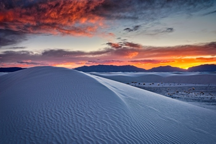Varjabedian is very sensitive to what he calls “the power of place.” The monument is located at the northern end of the Chihuahuan desert and is the largest surface deposit of gypsum sand in the world. It’s almost completely surrounded by military facilities. Varjabedian observes, “I want the land to tell the story, not for me to show what I think of the land.”