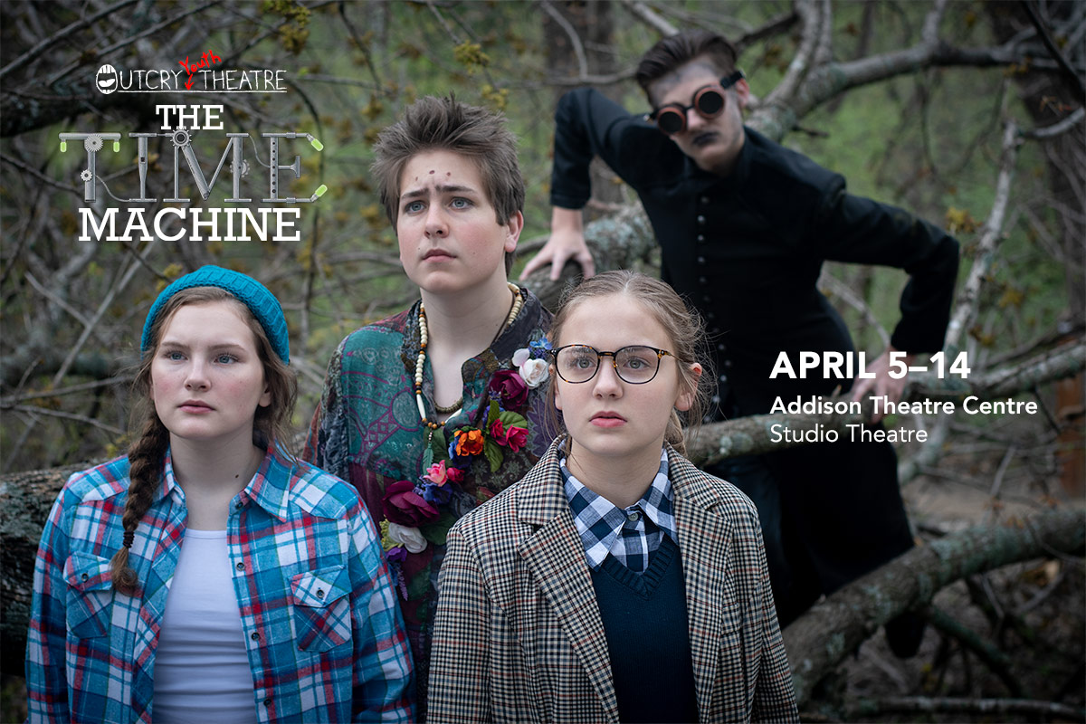 Outcry Youth Theatre presents the world premiere of The Time Machine, a modern take on H. G. Wells classic science fiction novella. A young scientist, Marie, is working to break through the barrier of time, hoping to discover if humanity will ever solve the world's problems. But when her friend Jocelyn starts the time machine before it's finished, they both travel far into the future, into a shocking new reality. The human race has evolved into two radically different species: the childlike Eloi, who live above ground, and the rough and brutal Morlocks, who live below ground. When the time machine is stolen by Morlocks, Marie and Jocelyn must enlist the help of an Eloi named Nawee to attempt to recover it, or risk getting stuck in the future forever.