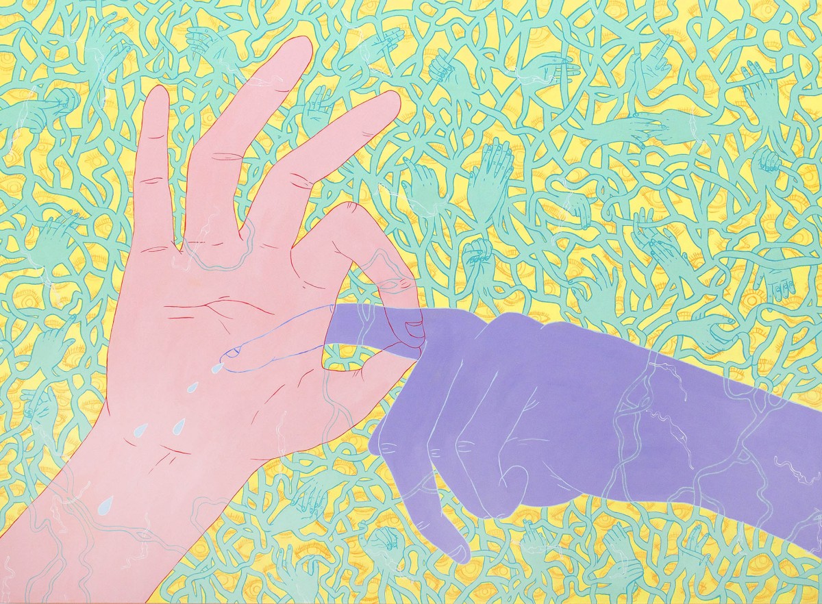 Come If You Want is a thesis exhibition by TCU MFA graduate Bella Jones. The show examines the body and sexuality in relation to gender politics. The exhibition includes paintings, animation, and installation. Taboo imagery of the body and certain sexual acts sophomorically amuse the viewer and bridge the gap between their uncomfortableness and understanding of human desire.