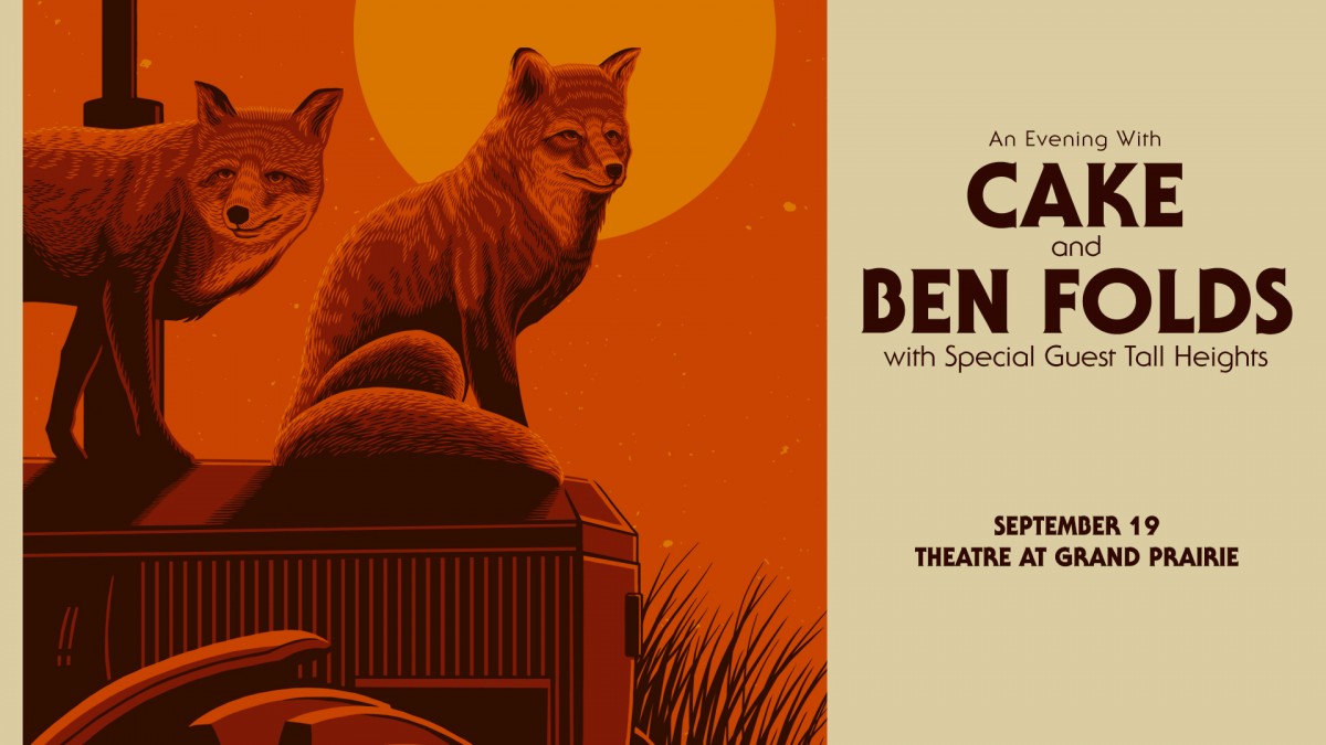 Cake and Ben Folds head to The Theatre at Grand Prairie on Thursday, September 19, 2019, with Tall Heights! Tickets go on sale Friday, April 19 at 10am CT. Doors open at 6 pm, show starts at 7 pm. This event is for all ages.