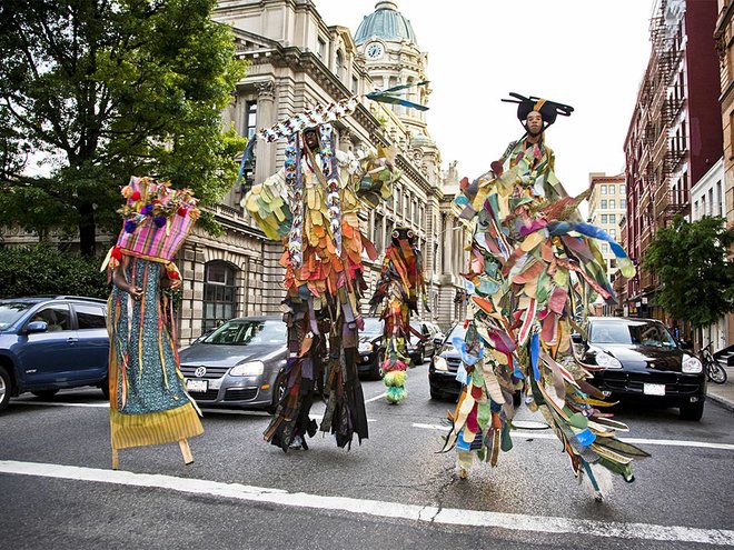 Intervention: Ocean Blues is a celebration of World Oceans Day with performances by Laura Anderson Barbata, the Brooklyn Jumbies, and Amphibian Stage Productions. This unique event combines spoken word, dance, stilt dancing, improvisation, ritual, procession, sculptural costuming and music to create a unique form of storied performance that will unfold at The Modern Art Museum of Fort Worth. Intervention: Ocean Blues is inspired by all the forms of life that make the ocean their home, in particular the extraordinary sea creatures that have the gift of producing their own light –bioluminescence- and live in the deepest and least explored depths of our ocean.
