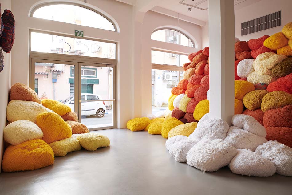 Hicks also commandeers innovative, industrially perfected fibers in her sculpture. Unique for their heightened colors of pure pigments that are resistant to both sun and humidity, synthetic fibers enable new creative exploits. This has greatly expanded the range of Hicks’s endeavors and also allows the artist to extend her installations outdoors. Seize, Weave Space continues in the Nasher Garden.