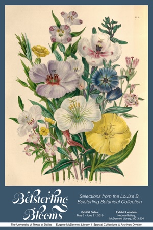 Belsterling Blooms aims to shed light on the breadth of botanical material found within the Louise B. Belsterling Collection. Visitors to the Nebula Gallery can view a curated selection of plates from four titles ranging from the mid-eighteenth to the mid-nineteenth century. The highlighted images have been chosen for their hand-colored illustrations and remarkable vibrancy. All displayed plates can be found within the Collection, although they have been digitally enlarged and augmented for presentation.
