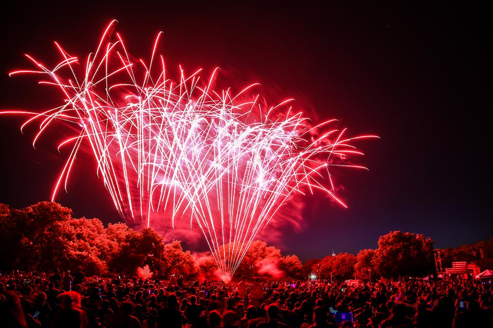 A spectacular low-level fireworks show is accompanied by a high-energy dance band on stage, a FREE KidZone area, concessionaire’s selling festival favorites and more!