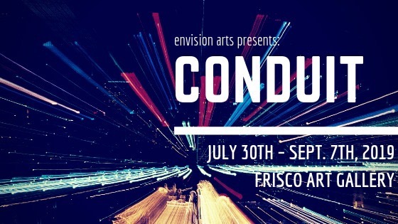 Envision Arts Founder / Director, Ginger Cochran, announced today that our contemporary art exhibition, Conduit, will be hosting an opening reception Sunday, August 4th, 2019, from 6:30 – 9 p.m., at the Frisco Art Gallery.