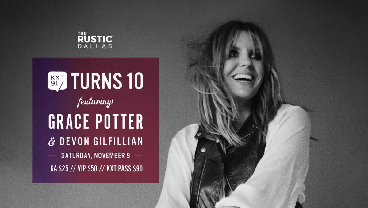 KXT 91.7 FM is marking its tenth year of broadcasting the best in new, local and legendary music in North Texas and beyond. To celebrate this milestone, the station will host a series of initiatives that exemplify KXT’s commitment to supporting a thriving music community in North Texas — including the release of a KXT Live Sessions album, a local artist video contest and a celebratory birthday concert featuring Grace Potter and Devon Gilfillian at The Rustic in Dallas on November 9, 2019.