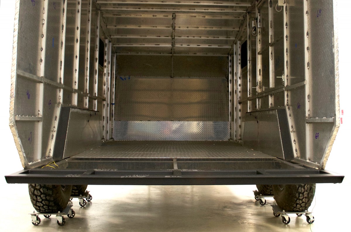 For the Art Galleries at TCU, Graybill premiers R.MUTT: Renegade Modernist Utility Travel Trailer, a response to what he perceives as an escalating cultural tension, paranoia, political anxiety, and cultural obsession with “Dooms Day Prepping” for “End of the World” situations. This Postmodern covered wagon is a 20-foot, extreme off-road camper trailer with a rugged aluminum diamond plate armored shell and 35” off-road tires. Part Dooms-Day-Prepper and part Modernist sculpture, the R.MUTT: Renegade Modernist Utility Travel Trailer is a Swiss Army knife of both form and function. Features include: sleeping quarters for 3-4 people, a slide-out field kitchen, water collection and filtration system, books on survival, bushcraft, homesteading and Postmodern art; a solar powered electrical system, and refrigerator/freezer.