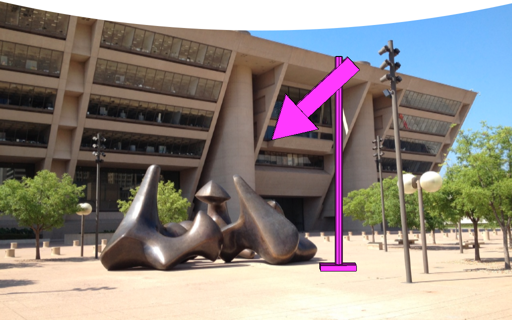 On a visit to Dallas City Hall, Harrison was surprised to see Henry Moore's The Dallas Piece surrounded by metal barricades much like a museum or gallery would place stanchions around an artwork.